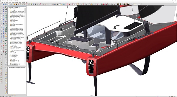 Er erklärt: “Angesichts des einzigartigen Charakters dieses Bootes war es schon fast Glückssache festzulegen, wo die Schwerter für die Tragflächen angebracht werden müssen. Daher entschieden wir uns für eine große Umhausung, in der die Halterungen an drei Positionen mit etwa 30 cm Abstand befestigt werden konnten, wodurch wir in der Lage waren das Boot perfekt auszubalancieren ohne den Bug zu öffnen. Um das aktuelle Design ständig mit so vielen Änderungen und neuen Ideen zu vereinbaren braucht man ein CAD-System das damit auch zurechtkommt.“